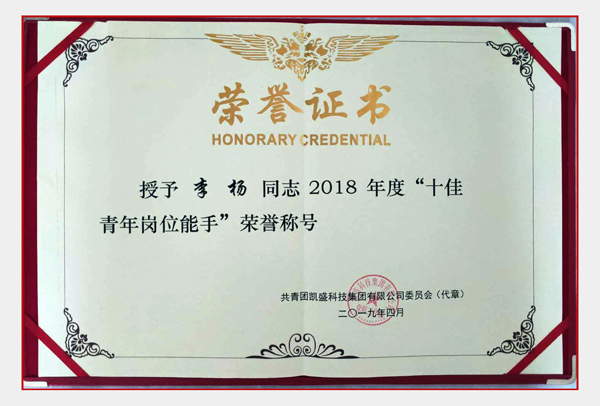 用忠誠書寫出最燦爛的篇章,讓奮斗成為青春最亮麗的底色。五四青年節之際,凱盛科技授予合肥中辰輕機總裝車間李楊“十佳青年崗位能手”榮譽。
