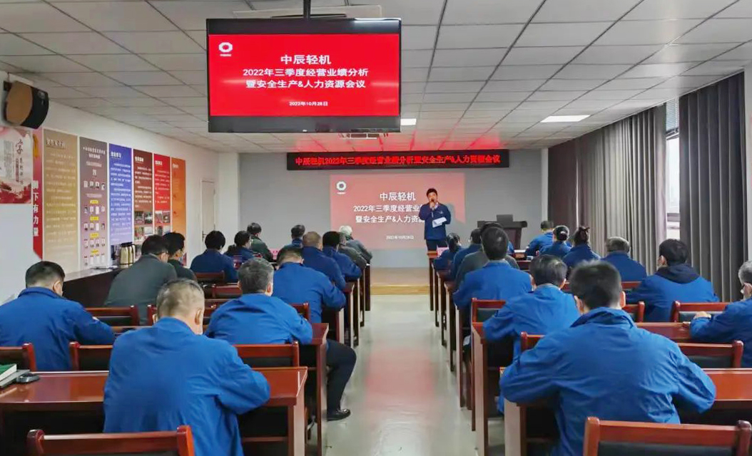 On October 28, Zhongchen Light Machinery held its 2022 third-quarter performance analysis meeting and work conference on safety production and human resources. The Party Secretary, Chairman, and General Manager Zhao Zhengwang attended the meeting and delivered a speech. The meeting was presided over by the Deputy General Manager He Sheng.